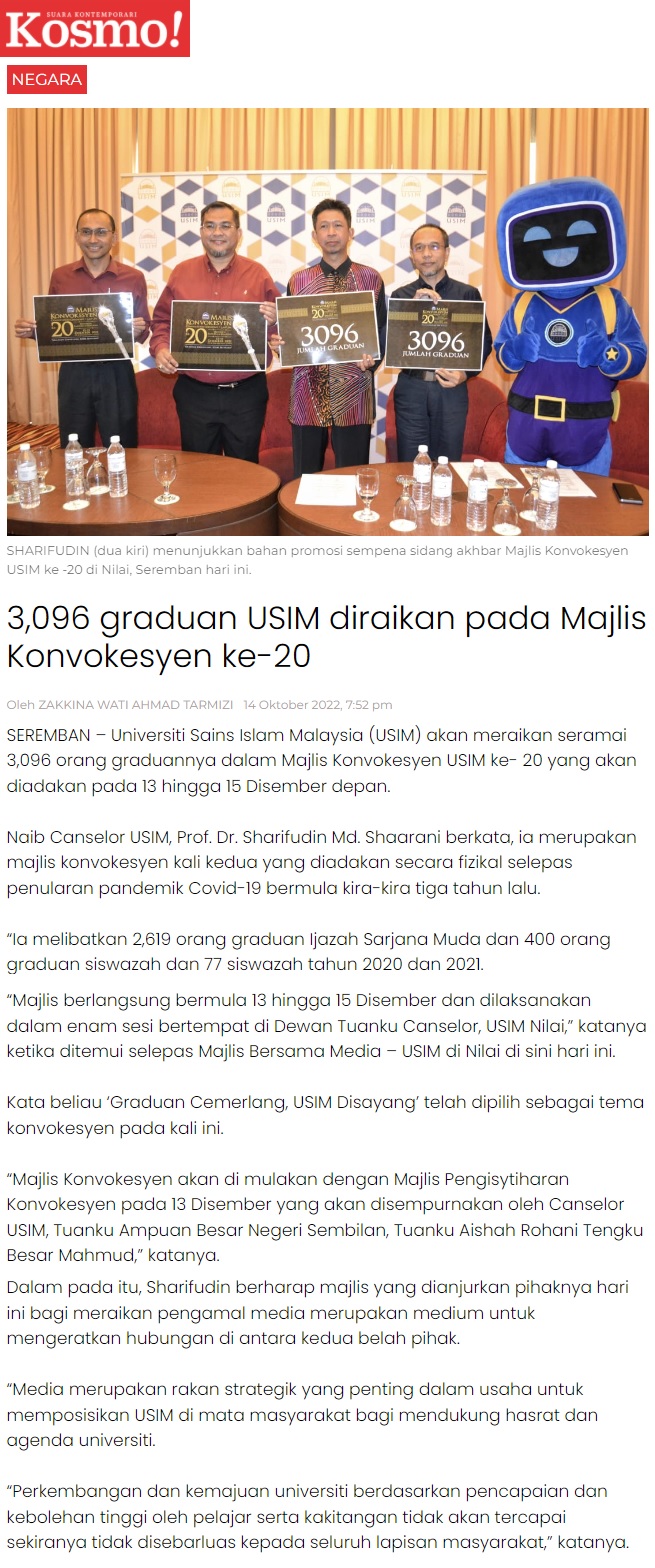 3096 graduan USIM diraikan pada Majlis Konvokesyen ke - 20