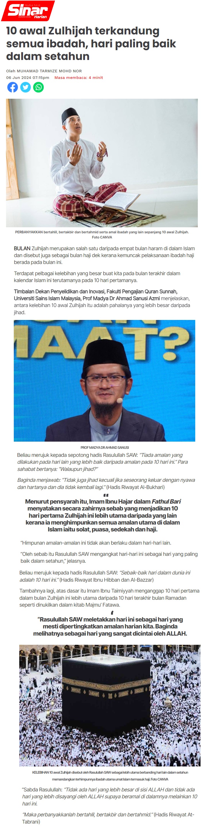 10 awal Zulhijah terkandung semua ibadah, hari paling baik dalam setahun