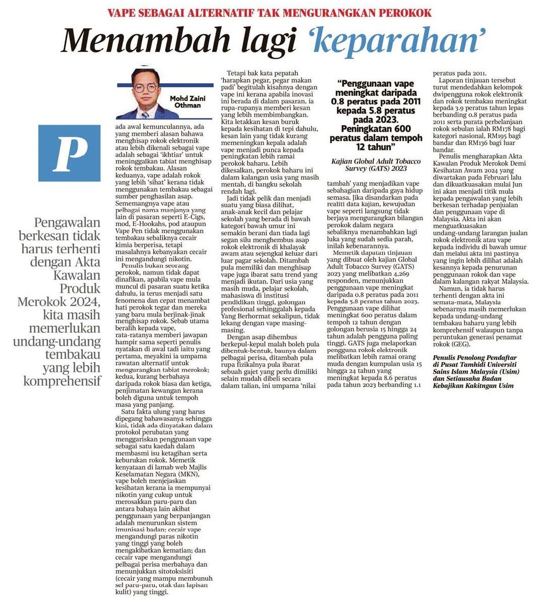 Vape sebagai alternatif tak mengurangkan perokok menambah lagi keparahan