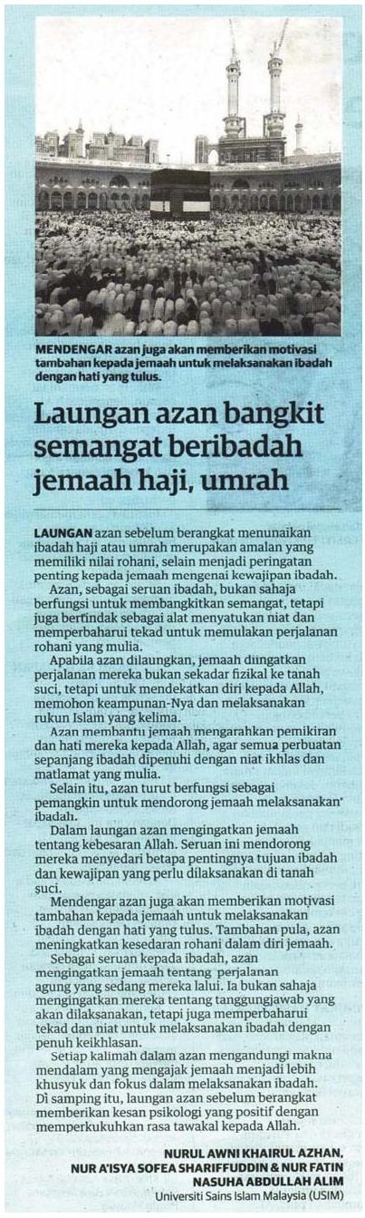 LAUNGAN AZAN BANGKIT SEMANGAT BERIBADAH JEMAAH HAJI, UMRAH