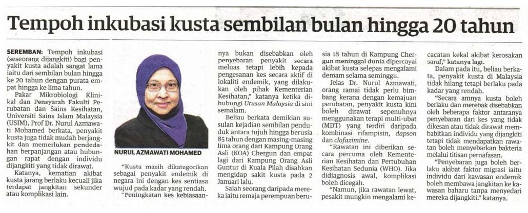 Tempoh inkubasi kusta sembilan bulan hingga 20 tahun