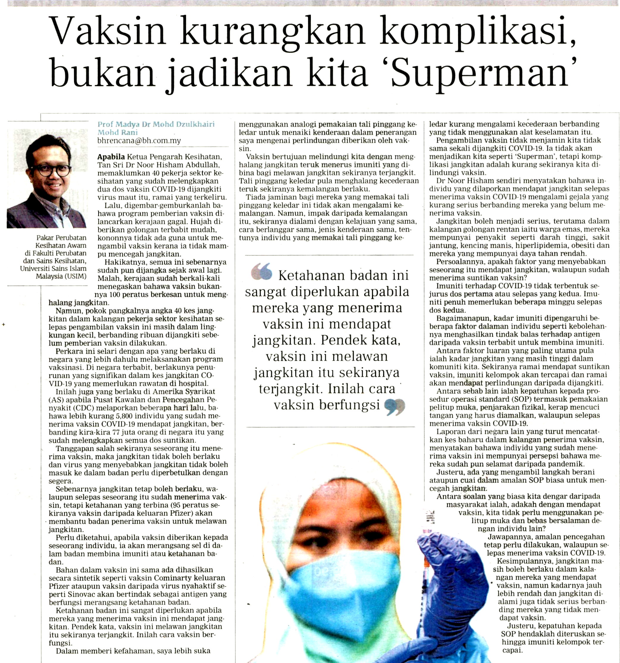 Vaksin Kurangkan Komplikasi Bukan Jadikan Kita Superman