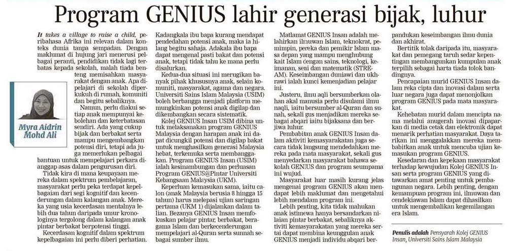 Program Genius Lahir Generasi Bijak, Luhur