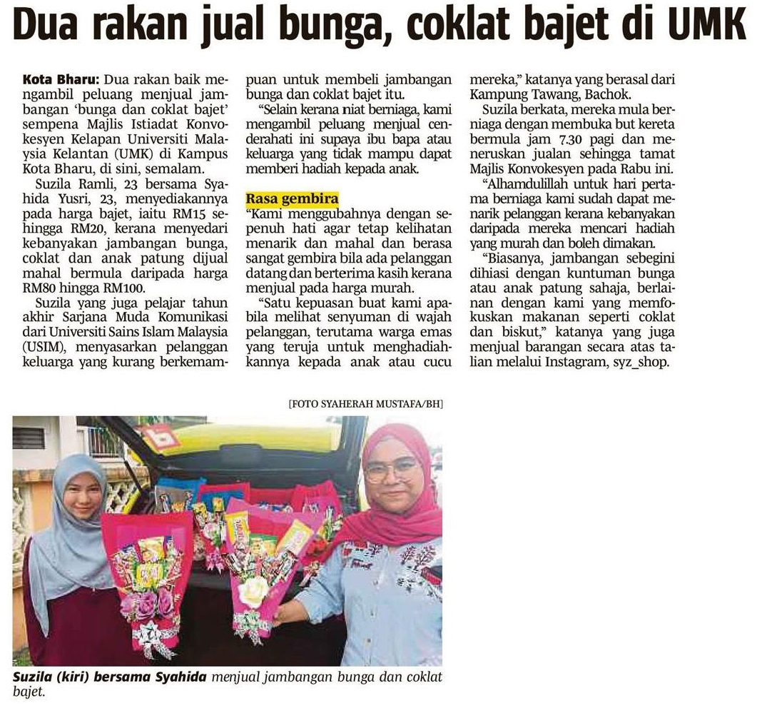 BERITA HARIAN 15 OKTOBER 2018 MS 18 DUA RAKAN JUAL BUNGA, COKLAT BAJET DI UMK.jpg