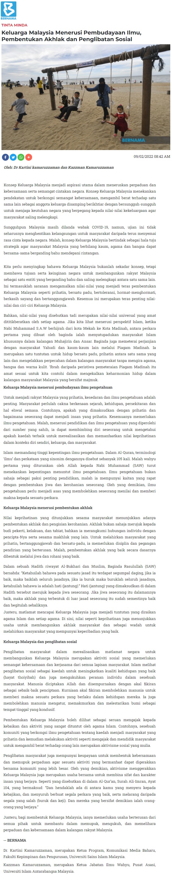 Keluarga Malaysia Menerusi Pembudayaan Ilmu, Pembentukan Akhlak Dan Penglibatan Sosial