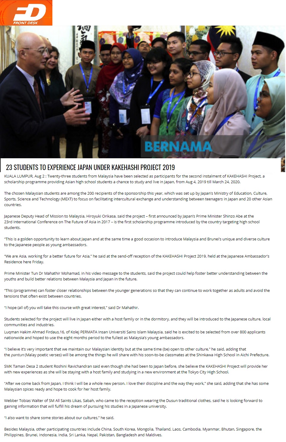 23 Students To Experience Japan Under Kakehashi Project 2019
