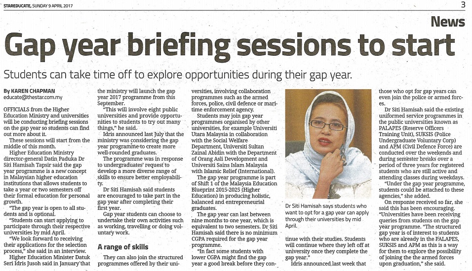SUNDAY STAR - GAP YEAR BRIEFING SESSIONS TO START, 9 APRIL 2017, MS 3 (STAREDUCATE).jpg