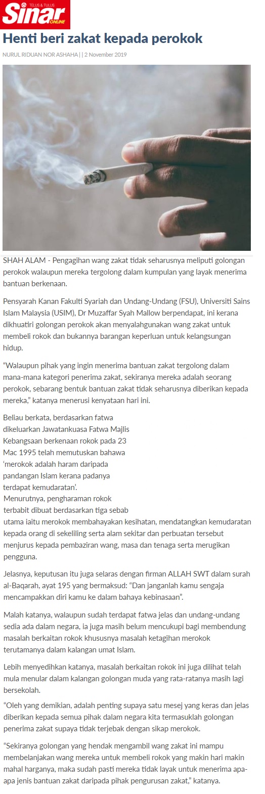 Henti Zakat Kepada Perokok