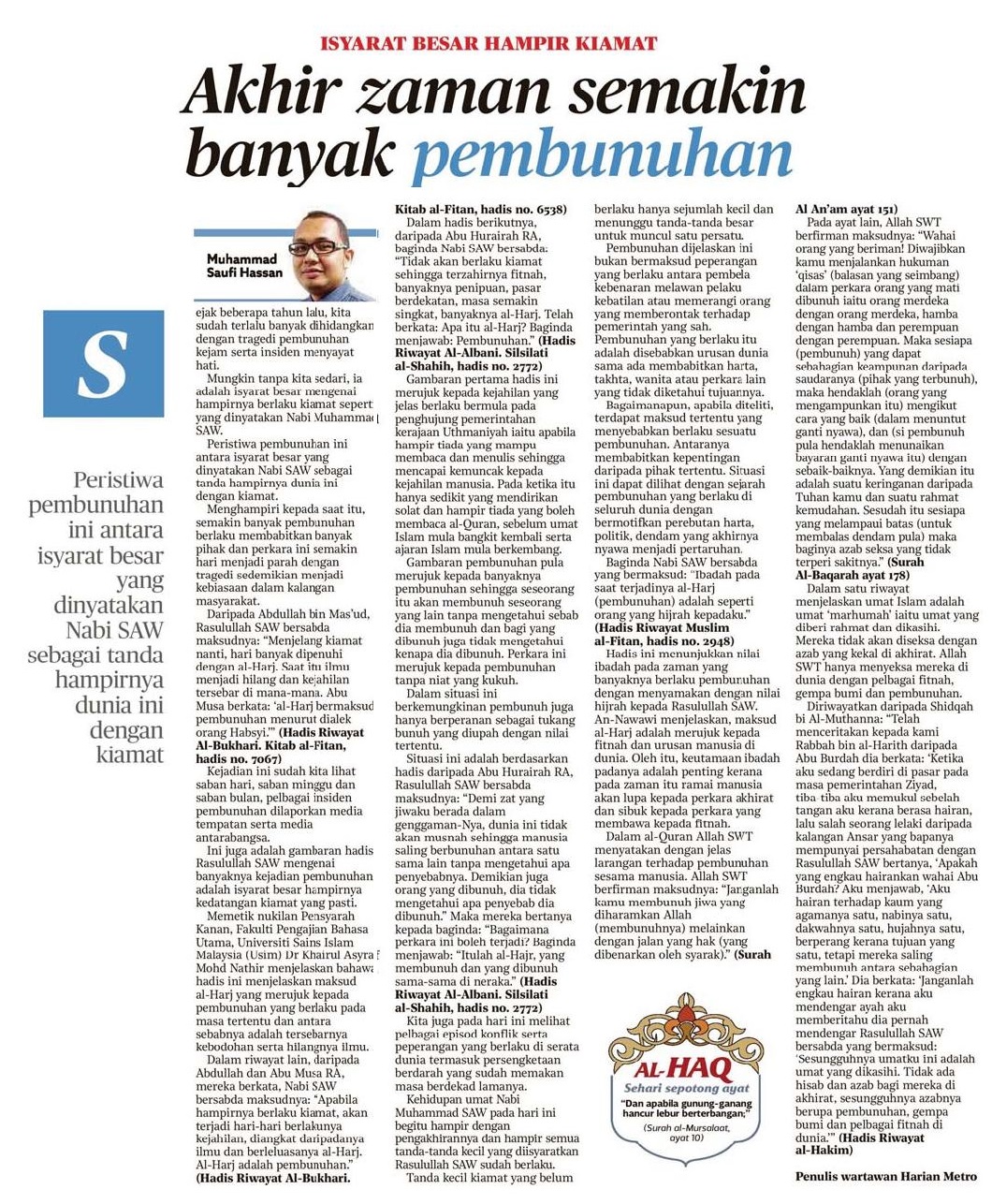 Akhir zaman semakin banyak pembunuhan