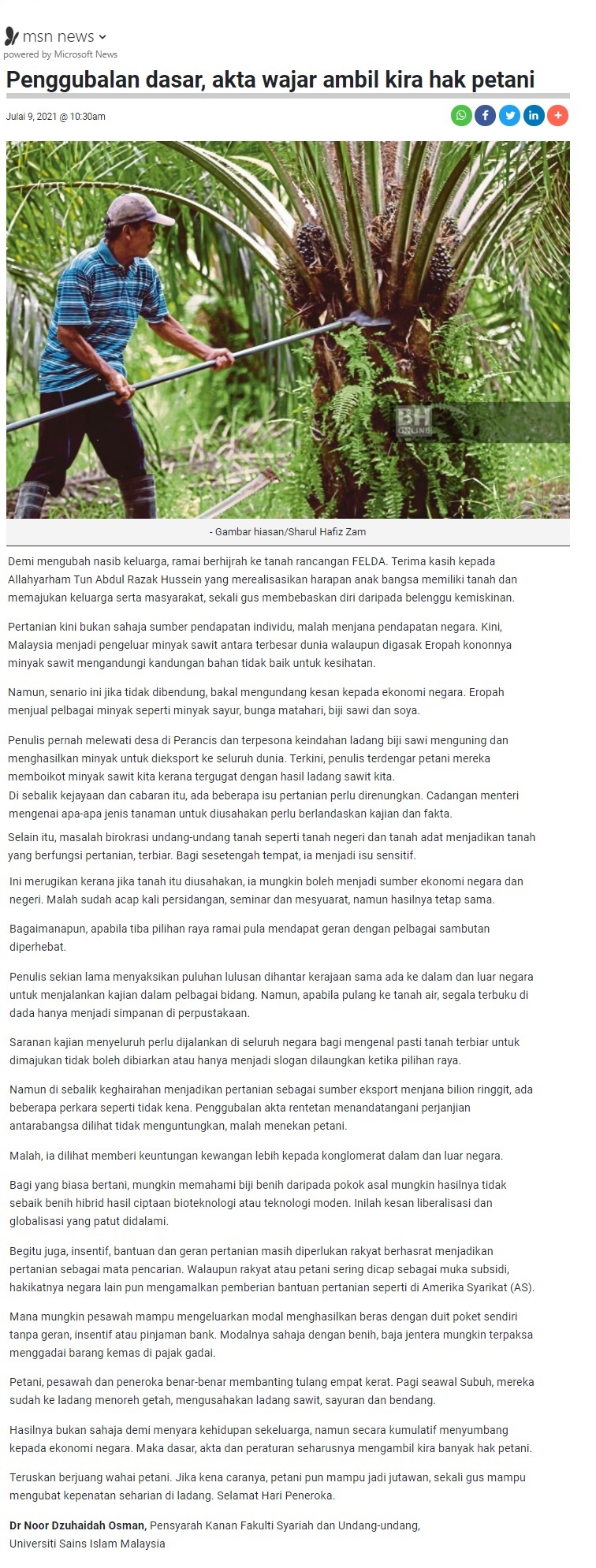 Penggubalan Dasar, Akta Wajar Ambil Kira Hak Petani