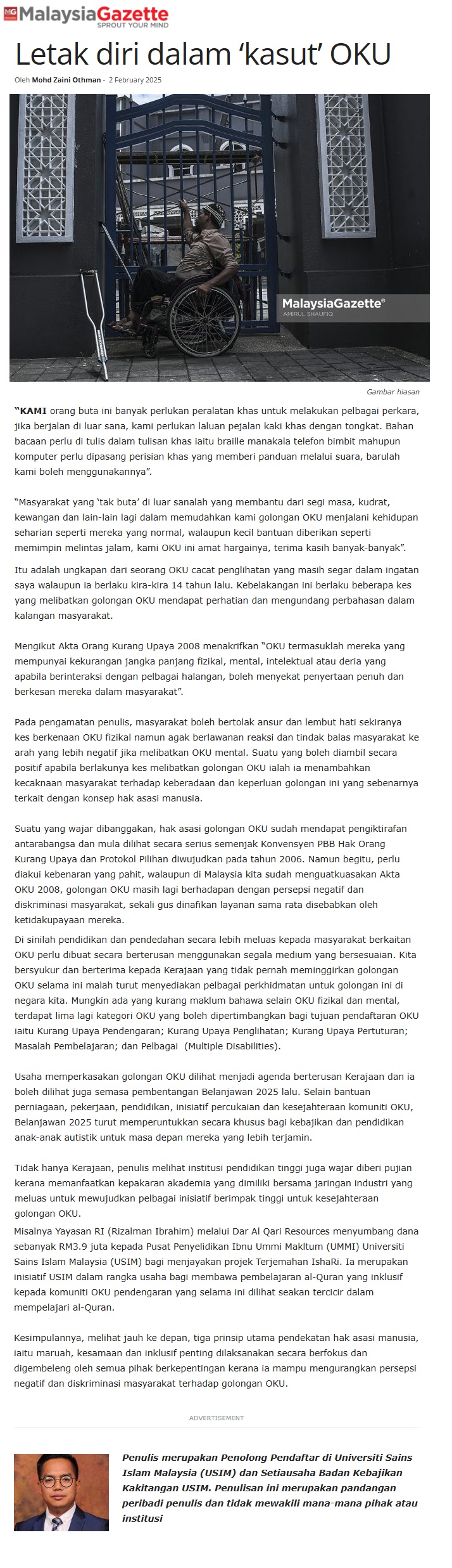 Letak diri dalam 'kasut' OKU