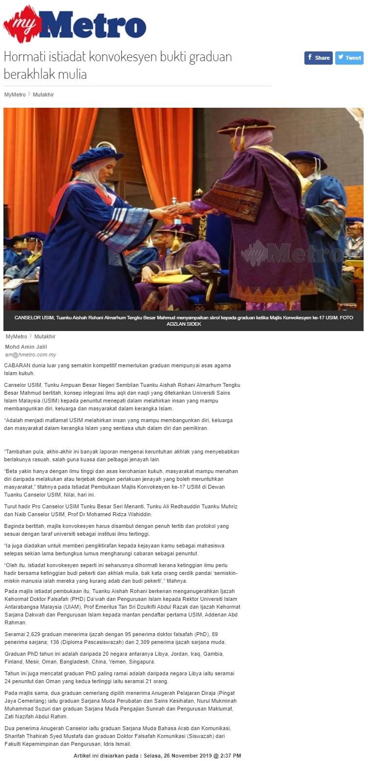 Hormati Istiadat Konvokesyen Bukti Graduan Berakhlak Mulia