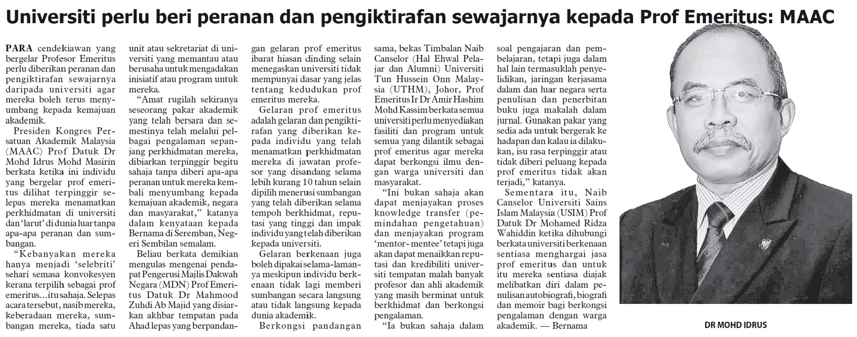 Universiti Perlu Beri Peranan Dan Pengiktirafan Sewajarnya Kepada Prof Emeritus: MAAC