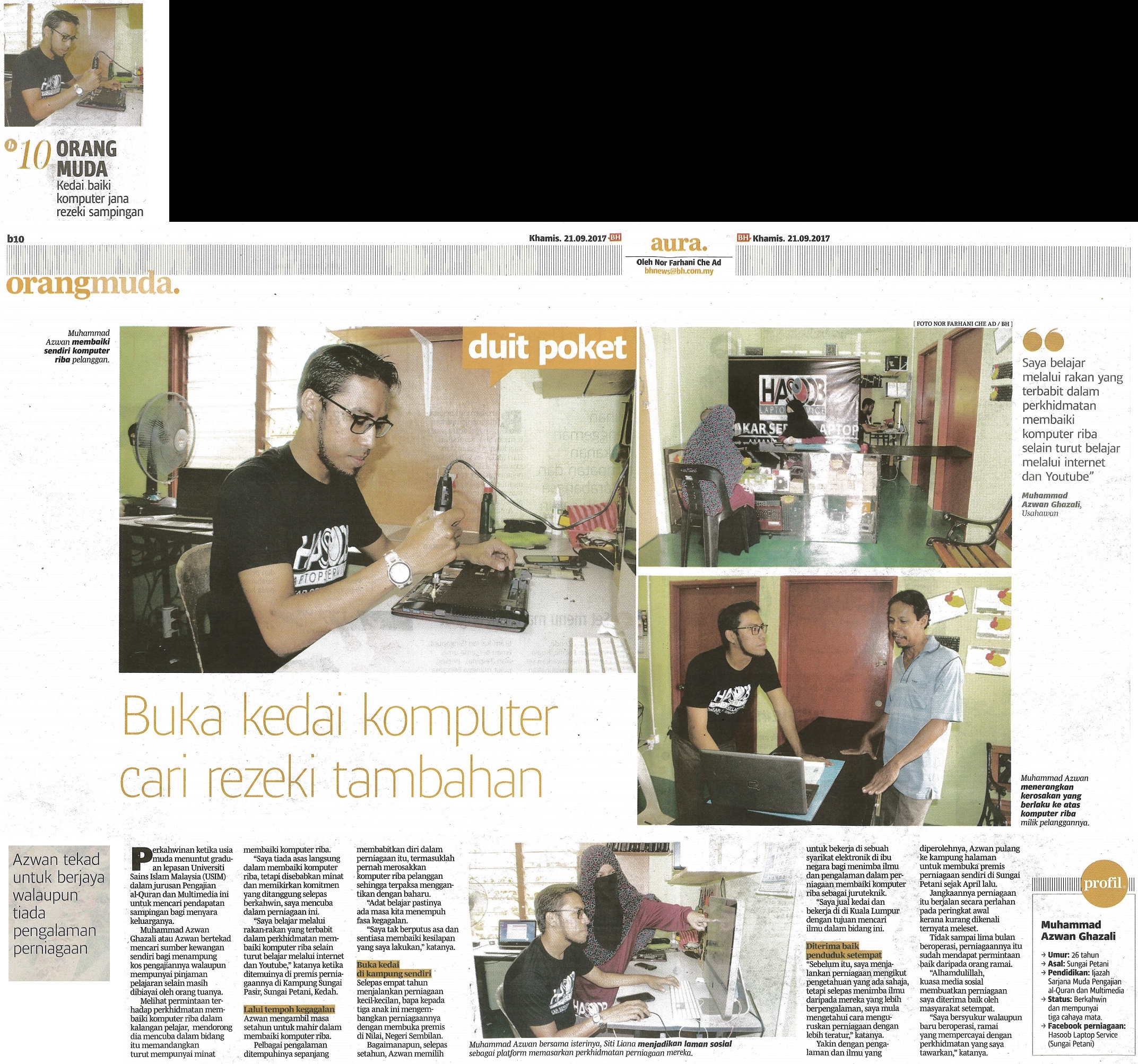 BERITA HARIAN - BUKA KEDAI KOMPUTER CARI REZEKI TAMBAHAN, 21 SEPTEMBER 2017, MS B1, B10 & B11.jpg