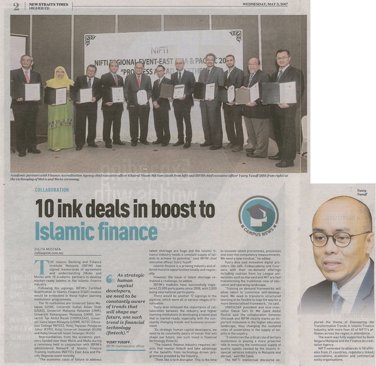 NEW STRAITS TIMES - 10 INK DEALS IN BOOST TO ISLAMIC FINANCE, 3 MEI 2017, MS 2 & 3 (ED).jpg