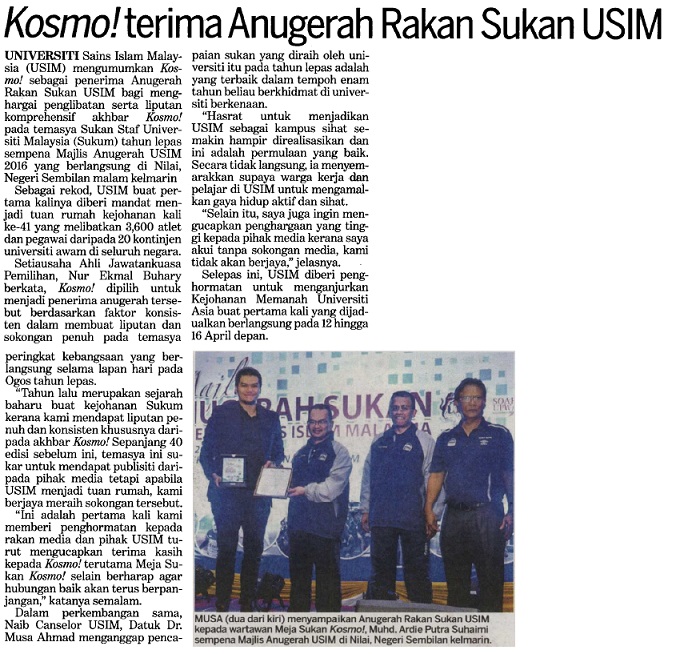 KOSMO! Terima Anugerah Rakan USIM