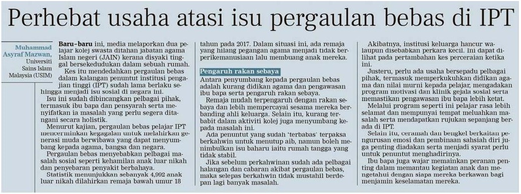 Perhebat usaha atasi isu pergaulan bebas di Ipt