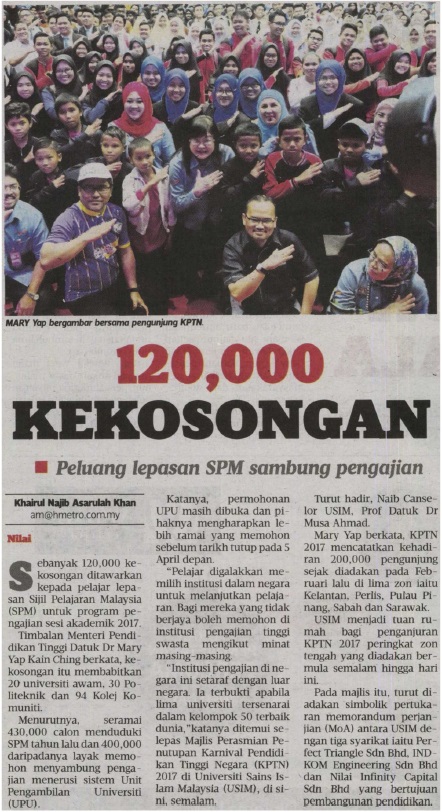 HARIAN METRO - 120,000 KEKOSONGAN PELUANG LEPASAN SPM SAMBUNG PENGAJIAN, 26 MAC 2017, MS 45.jpg