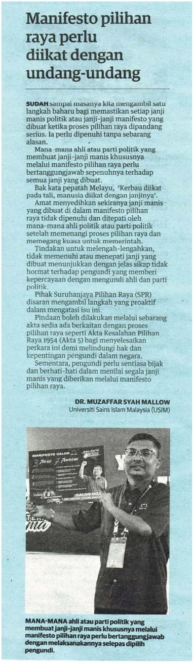 Manifesto pilihan raya perlu diikat dengan undang-undang