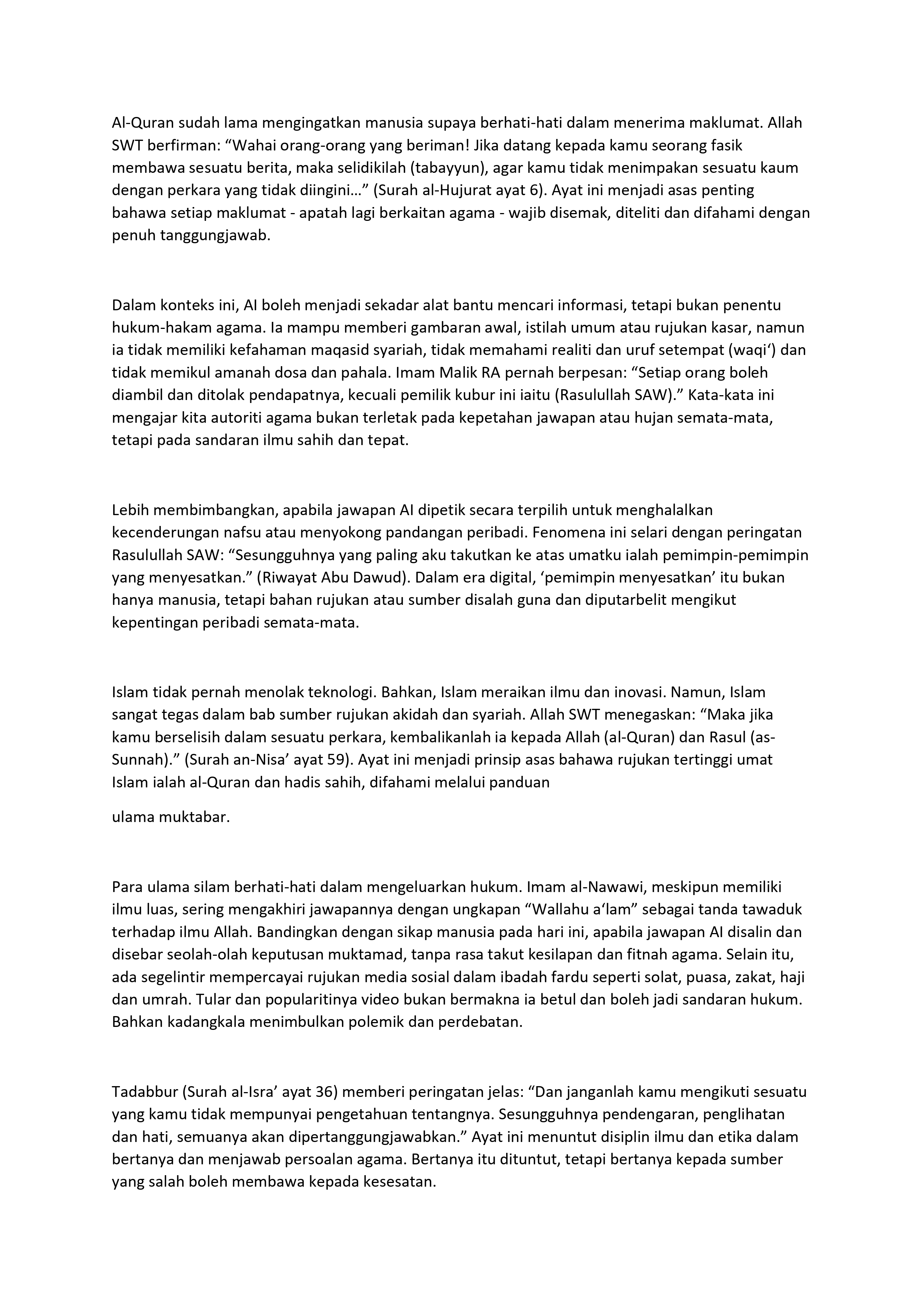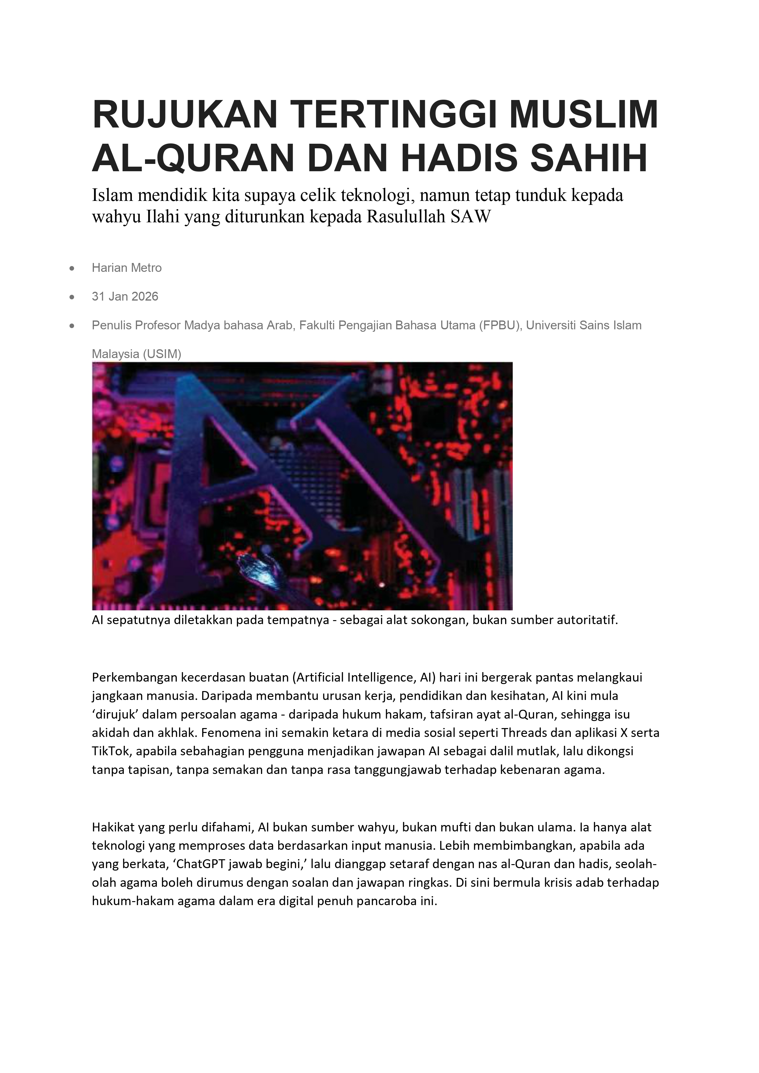 RUJUKAN TERTINGGI MUSLIM AL-QURAN DAN HADIS SAHIH