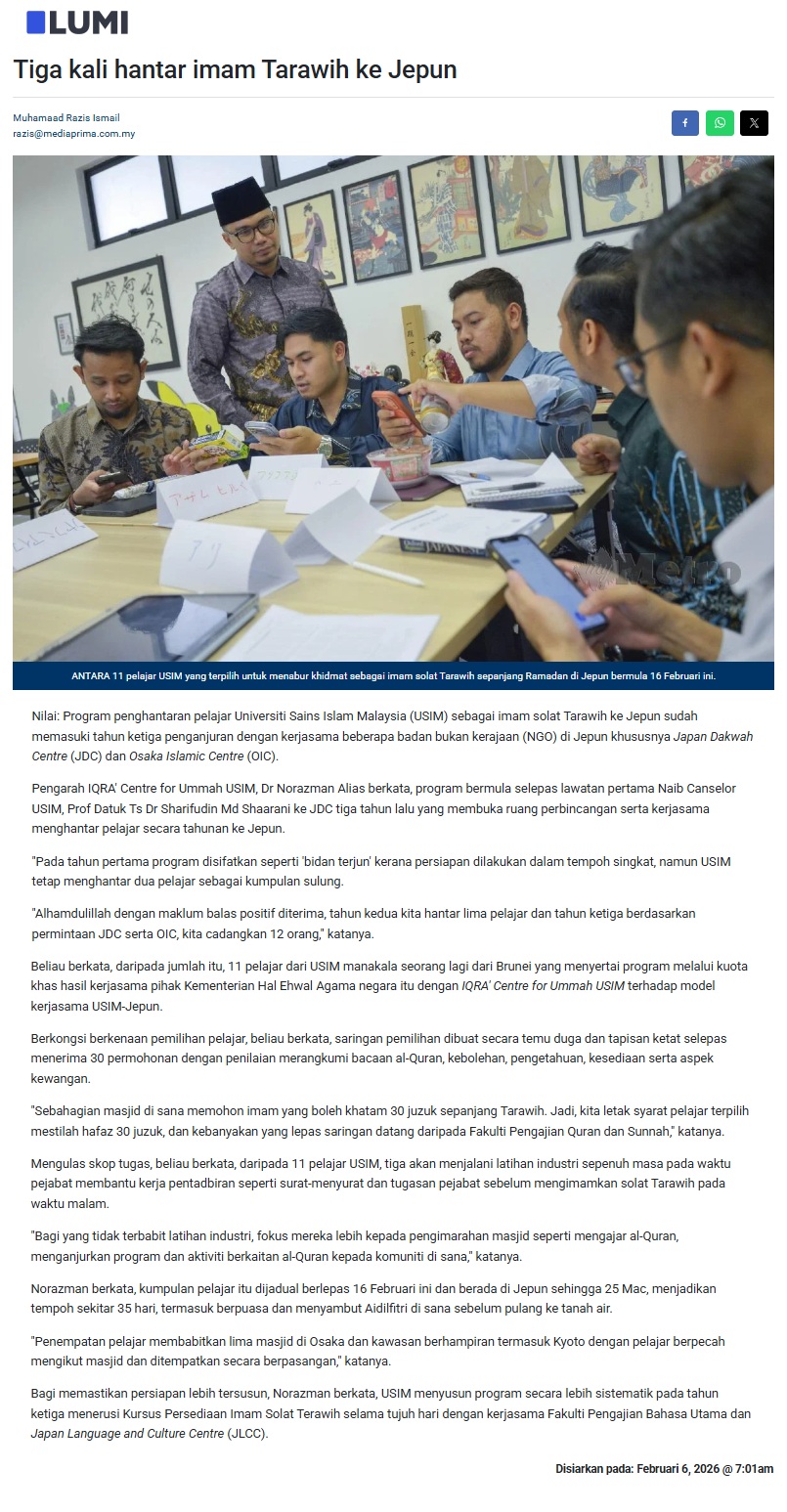 TIGA KALI IMAM TARAWIH KE JEPUN