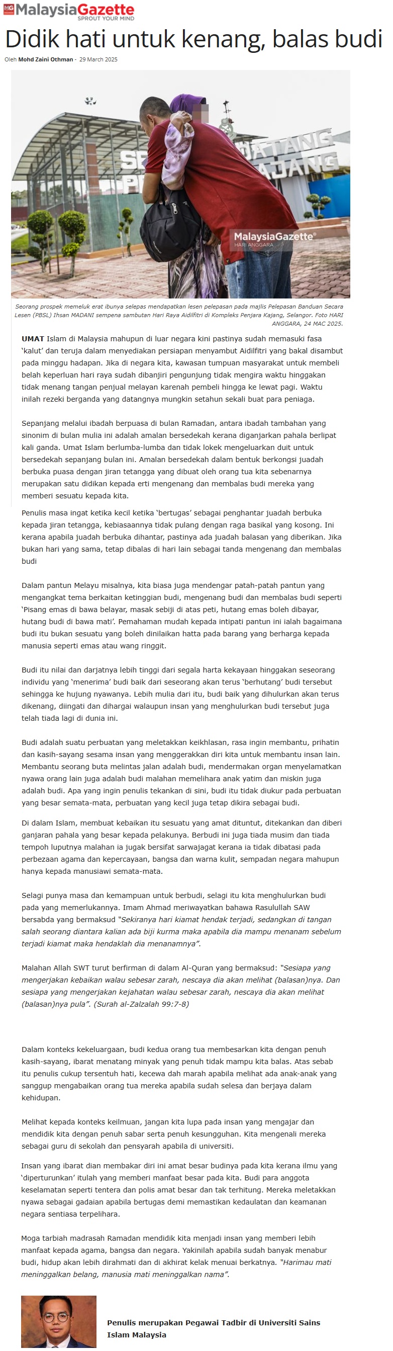 MALAYSIA GAZETTE 29 MAC 2025 DIDIK HATI UNTUK KENANG, BALAS BUDI.jpg