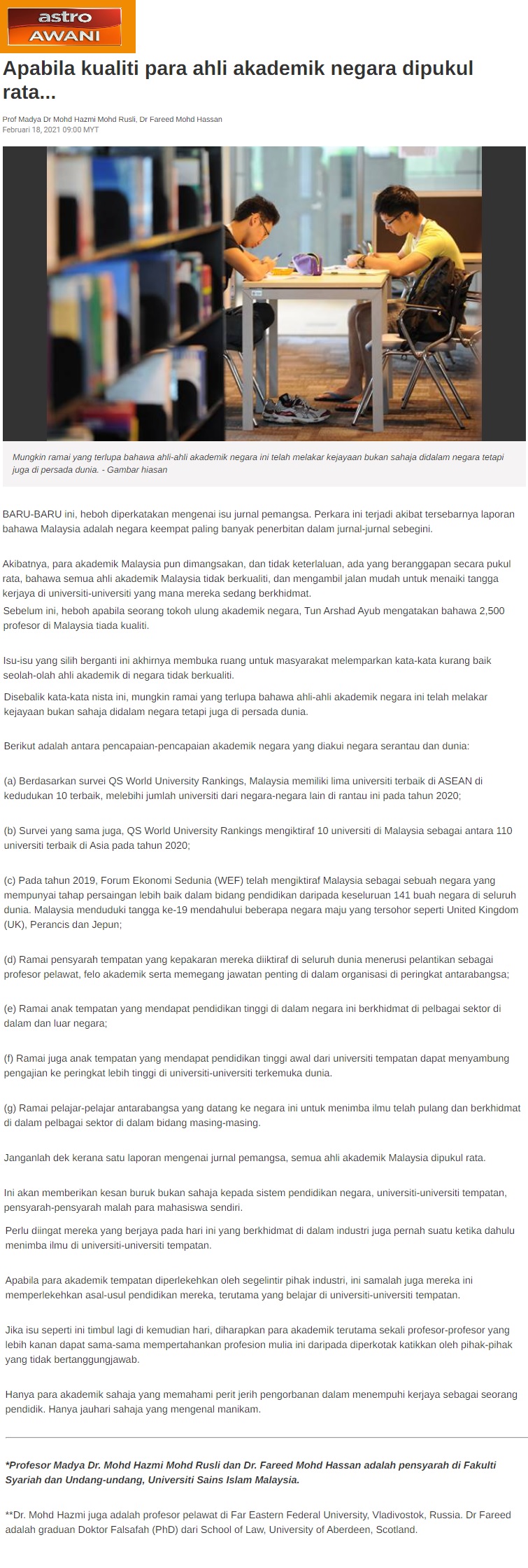 Apabila Kualiti Para Ahli Akademik Negara Dipukul Rata
