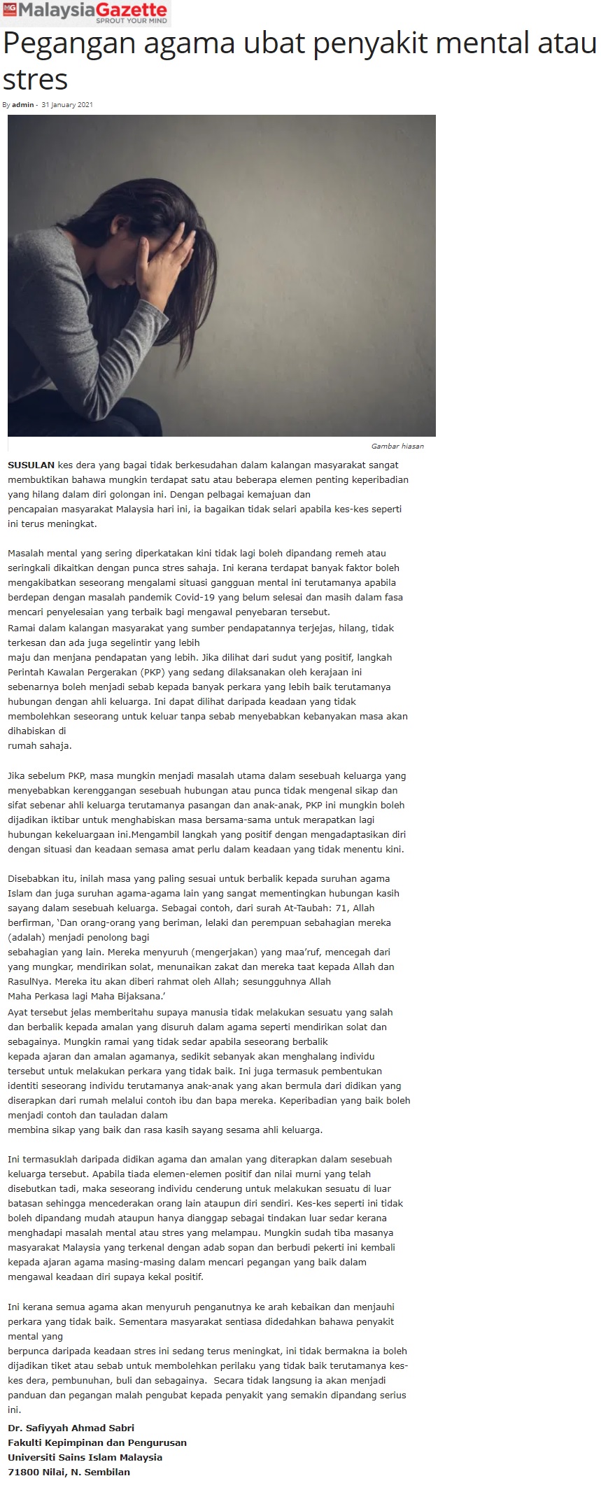 - MALAYSIA GAZETTE 31 JANUARI 2021 PEGANGAN AGAMA UBAT PENYAKIT MENTAL ATAU STRESS.jpg