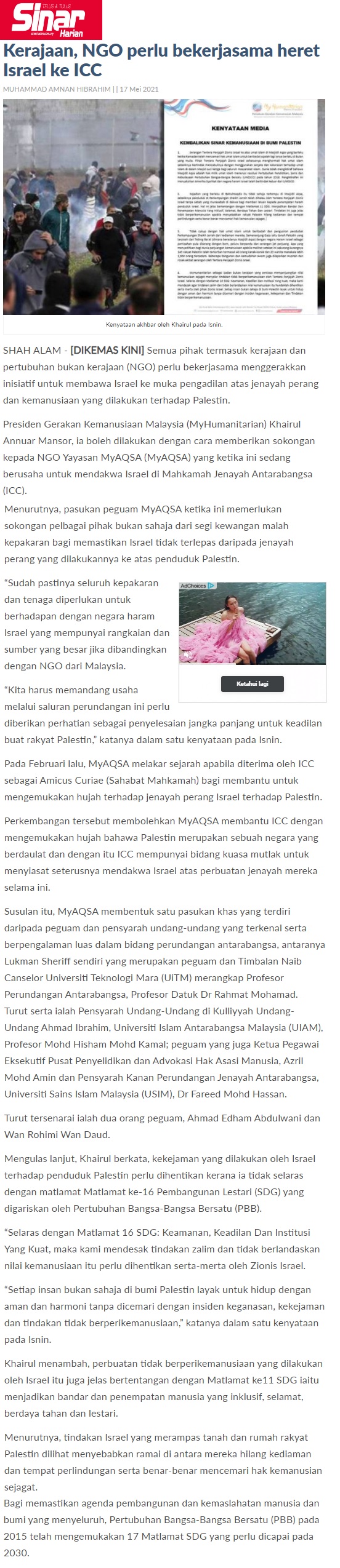 Kerajaan, NGO Perlu Bekerjasama Heret Israel Ke ICC