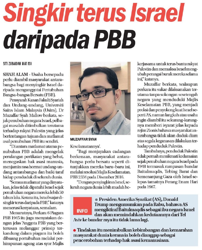 SINAR HARIAN - SINGKIR TERUS ISRAEL DARIPADA PBB, 11 DISEMBER 2017, MS 2.jpg