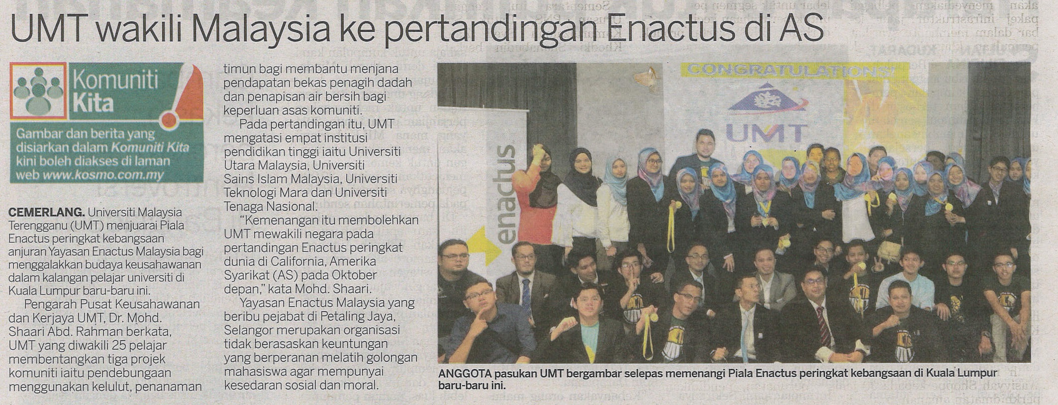 UMT Wakili Malaysia Ke Pertandingan Enactus Di AS