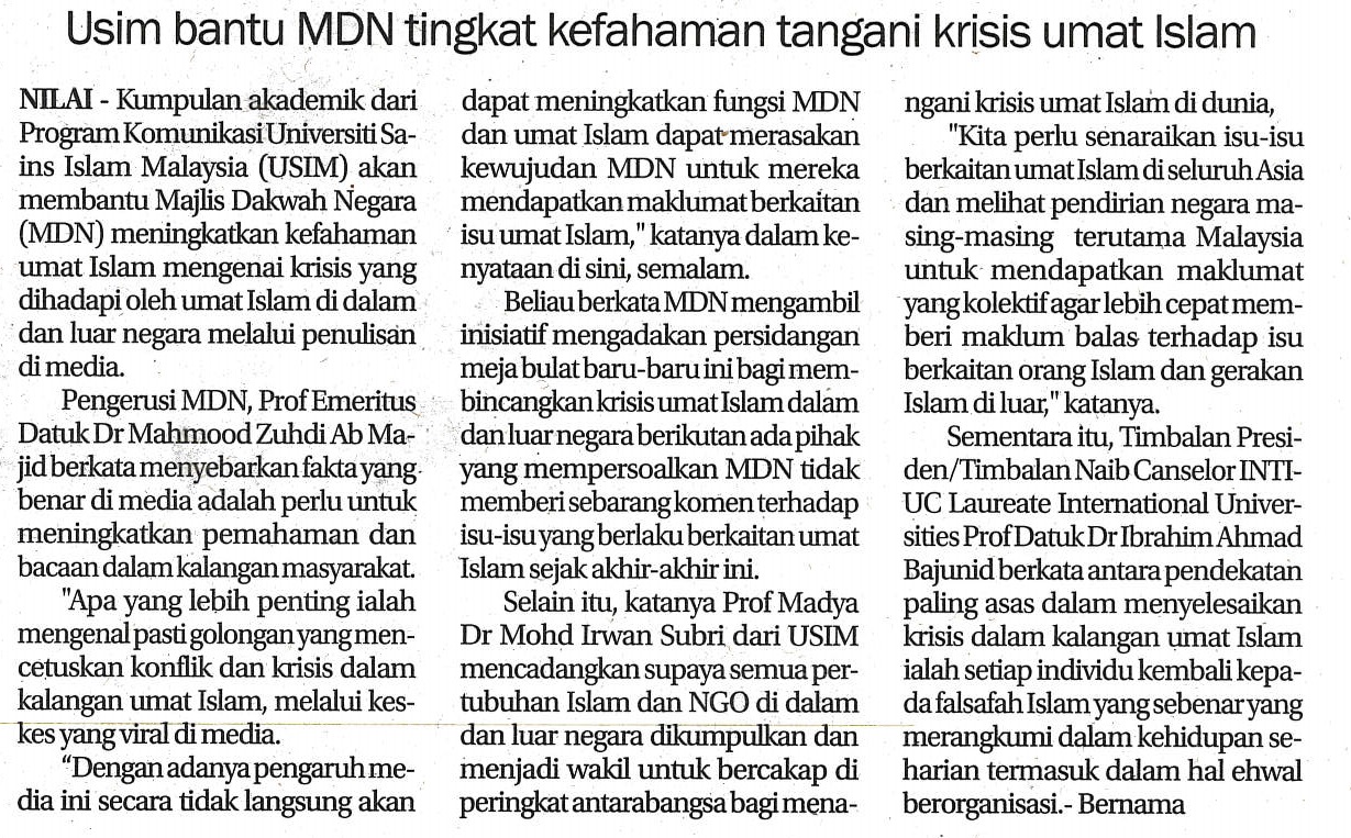 USIM Bantu MDN Tingkat Kefahaman Krisis Umat Islam