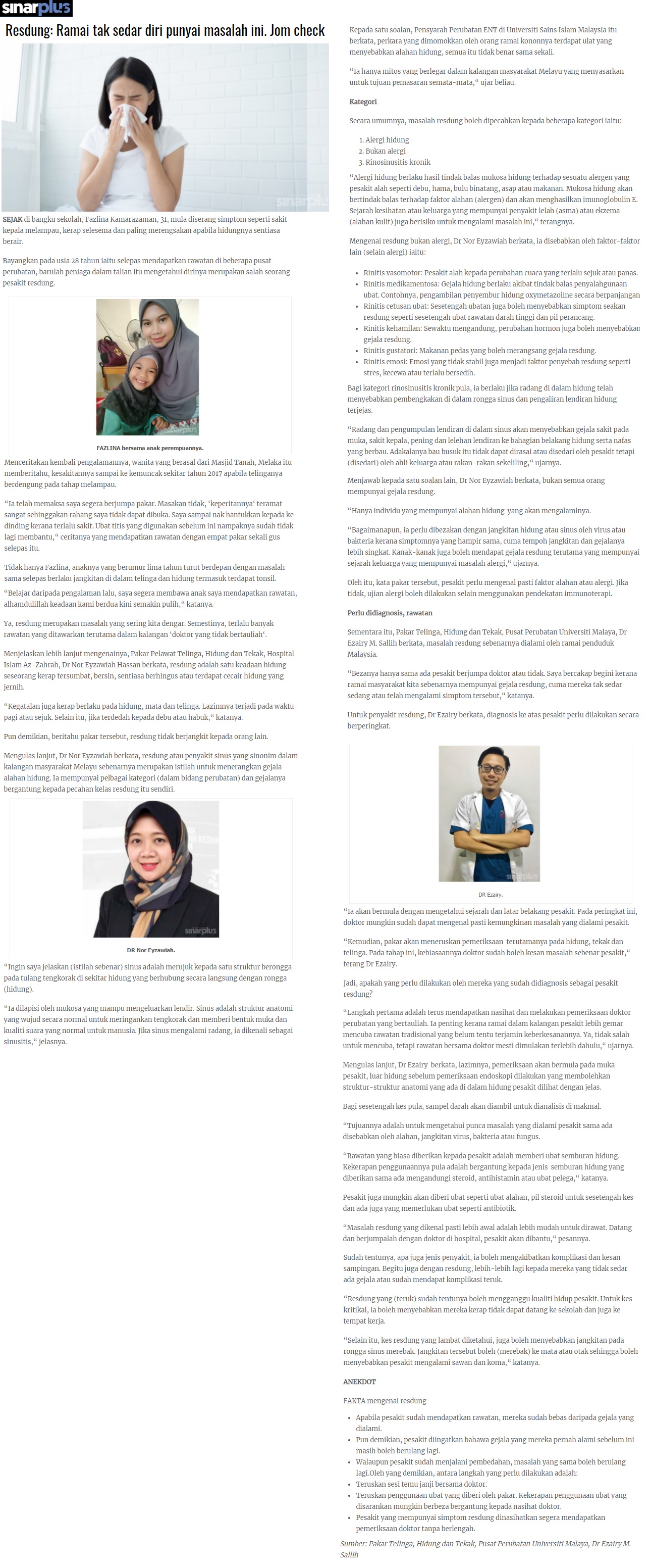 Ramai Tak Sedar Diri Punyai Masalah Resdung