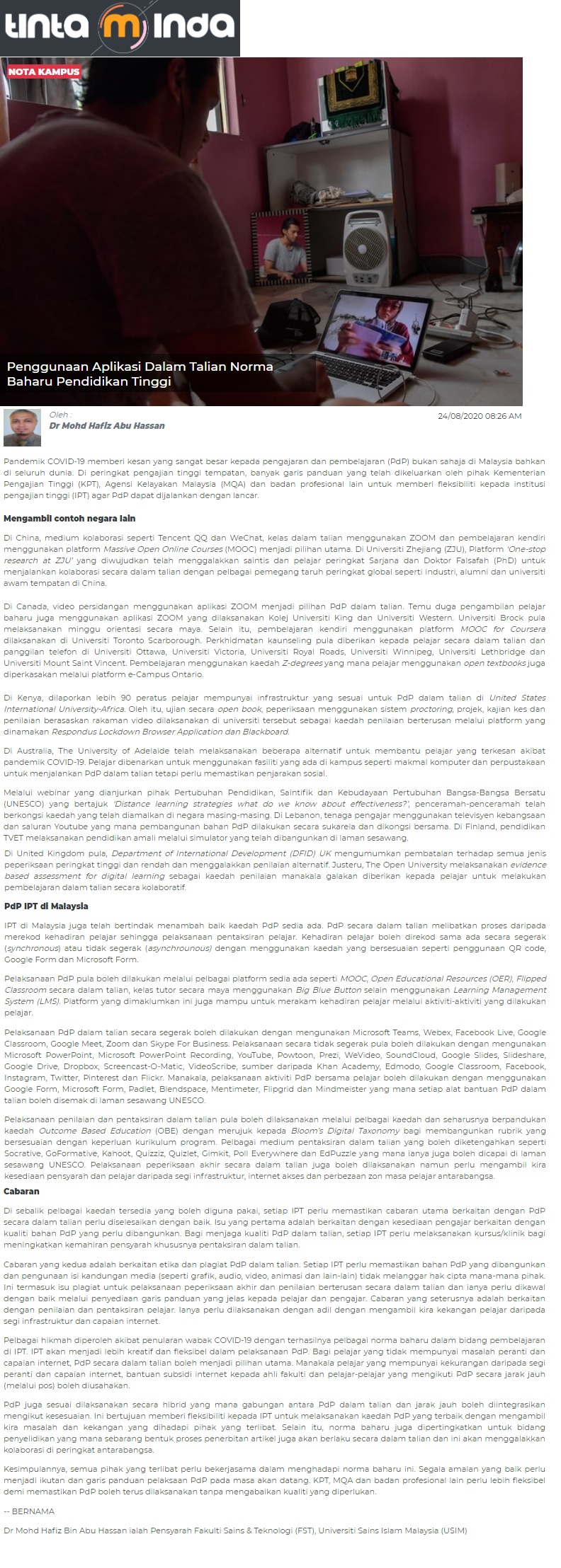 Penggunaan Aplikasi Dalam Talian Norma Baharu Pendidikan Tinggi