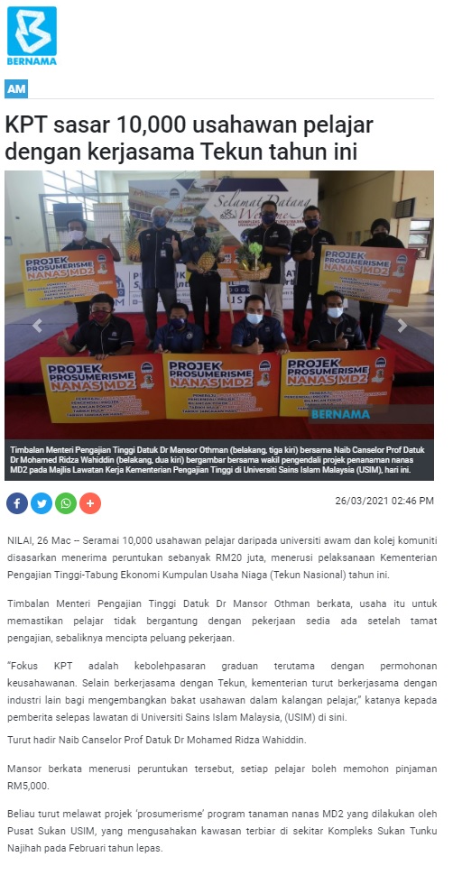KPT Sasar 10,000 Usahawan Pelajar Dengan Kerjasama Tekun Tahun Ini