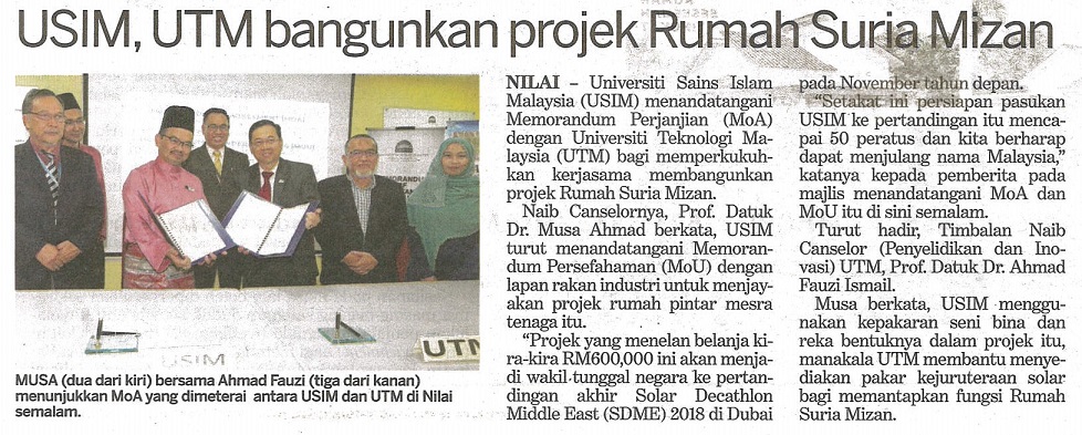 USIM, UTM Bangunkan Projek Rumah Suria Mizan