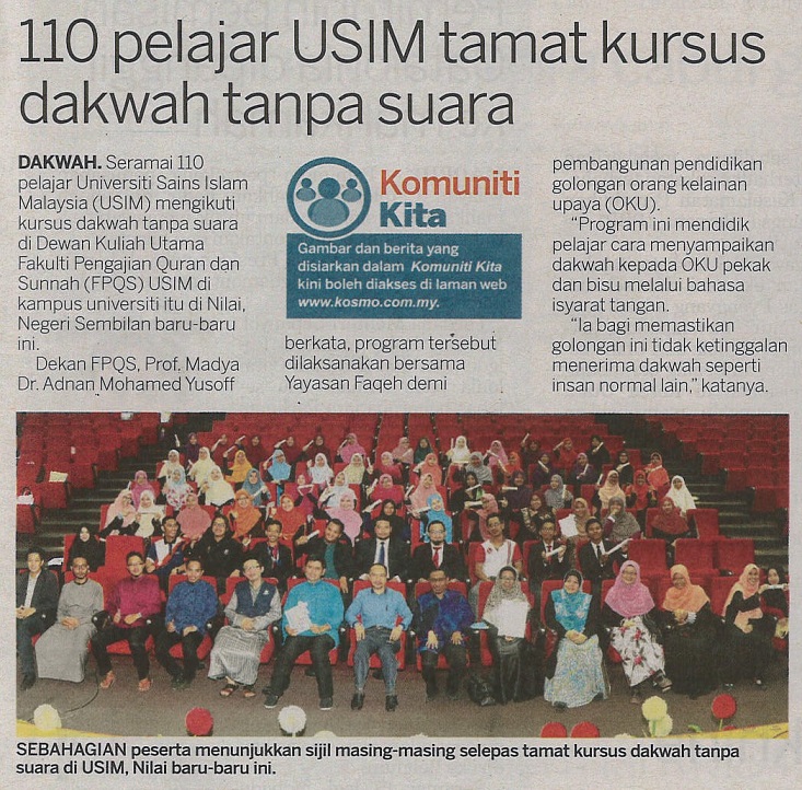 110 Pelajar USIM Tamat Kursus Dakwah Tanpa Suara