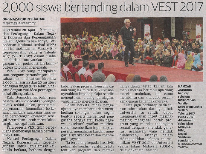 UTUSAN MALAYSIA - 2,000 SISWA BERTANDING DALAM VEST 2017, 29 APRIL 2017, MS 29.jpg