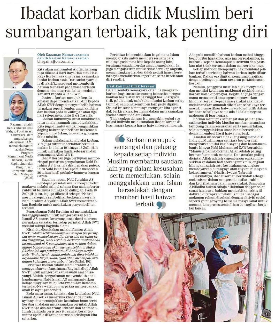 Ibadat korban didik muslim beri sumbangan terbaik, tak penting diri