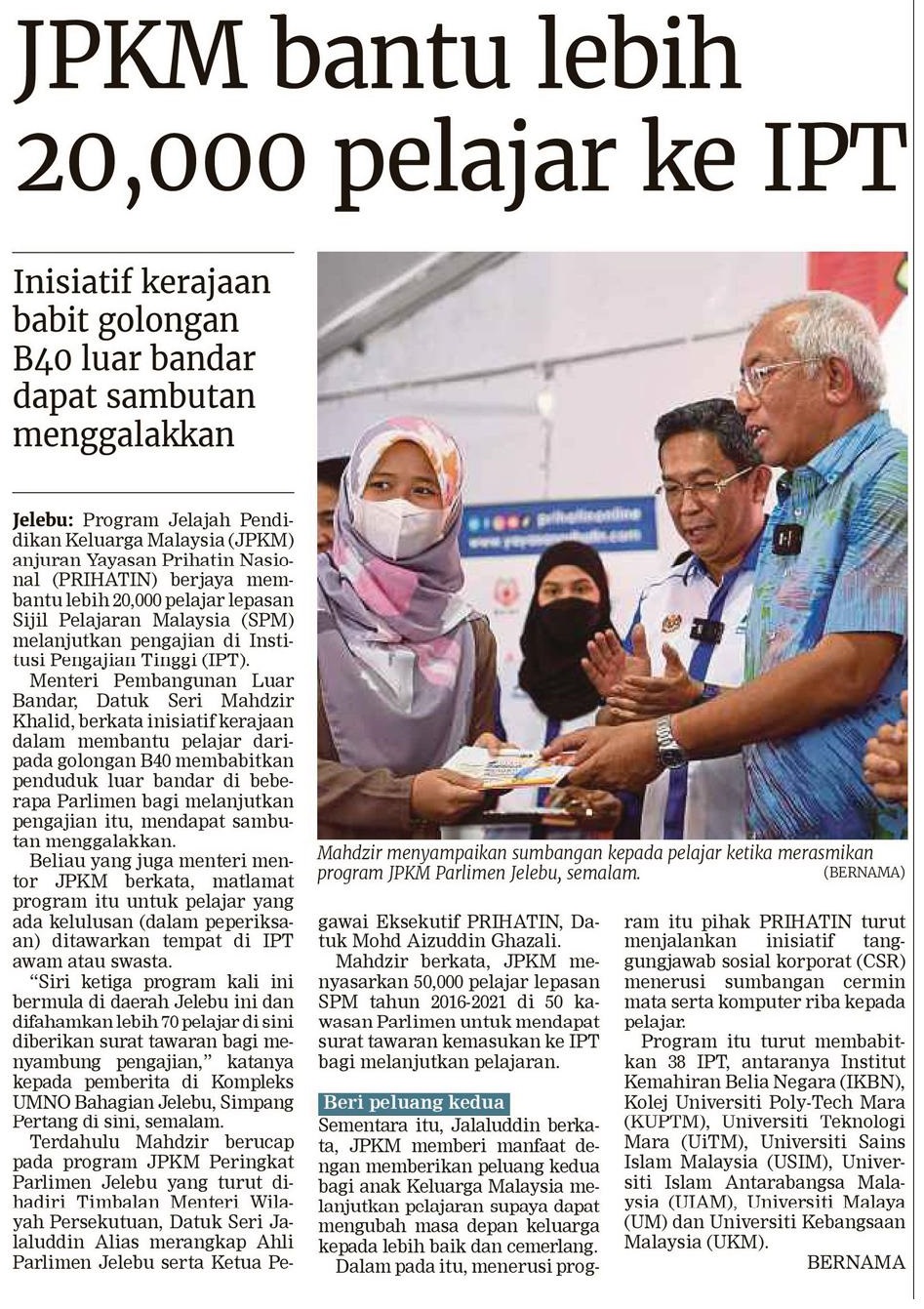 JPKM Bantu Lebih 20,000 Pelajar Ke IPT