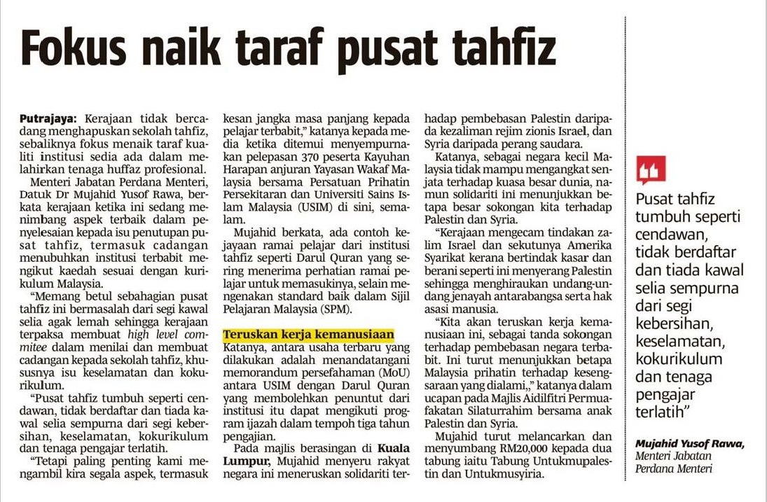 BERITA HARIAN 15 JULAI 2018 MS 3 FOKUS NAIK TARAF PUSAT TAHFIZ.jpg