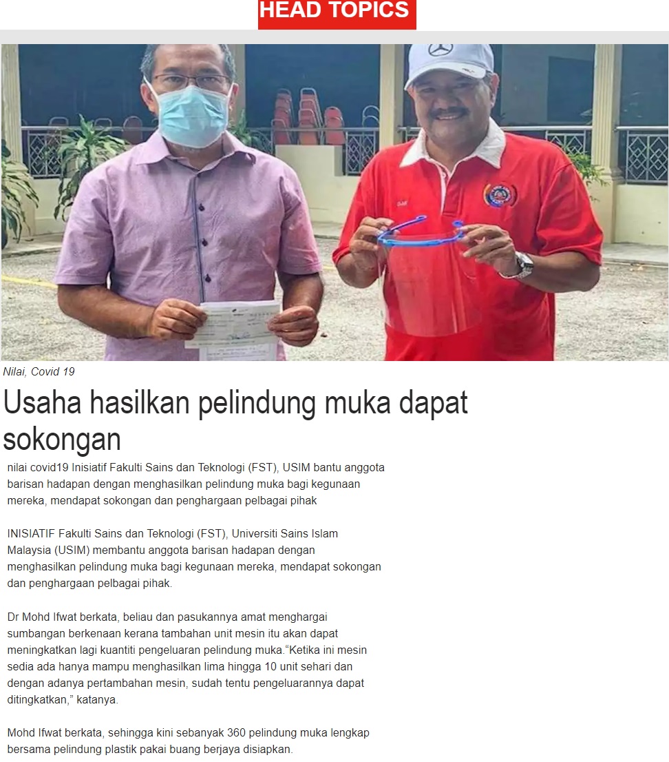 Usaha Hasilkan Pelindung Muka Dapat Sokongan