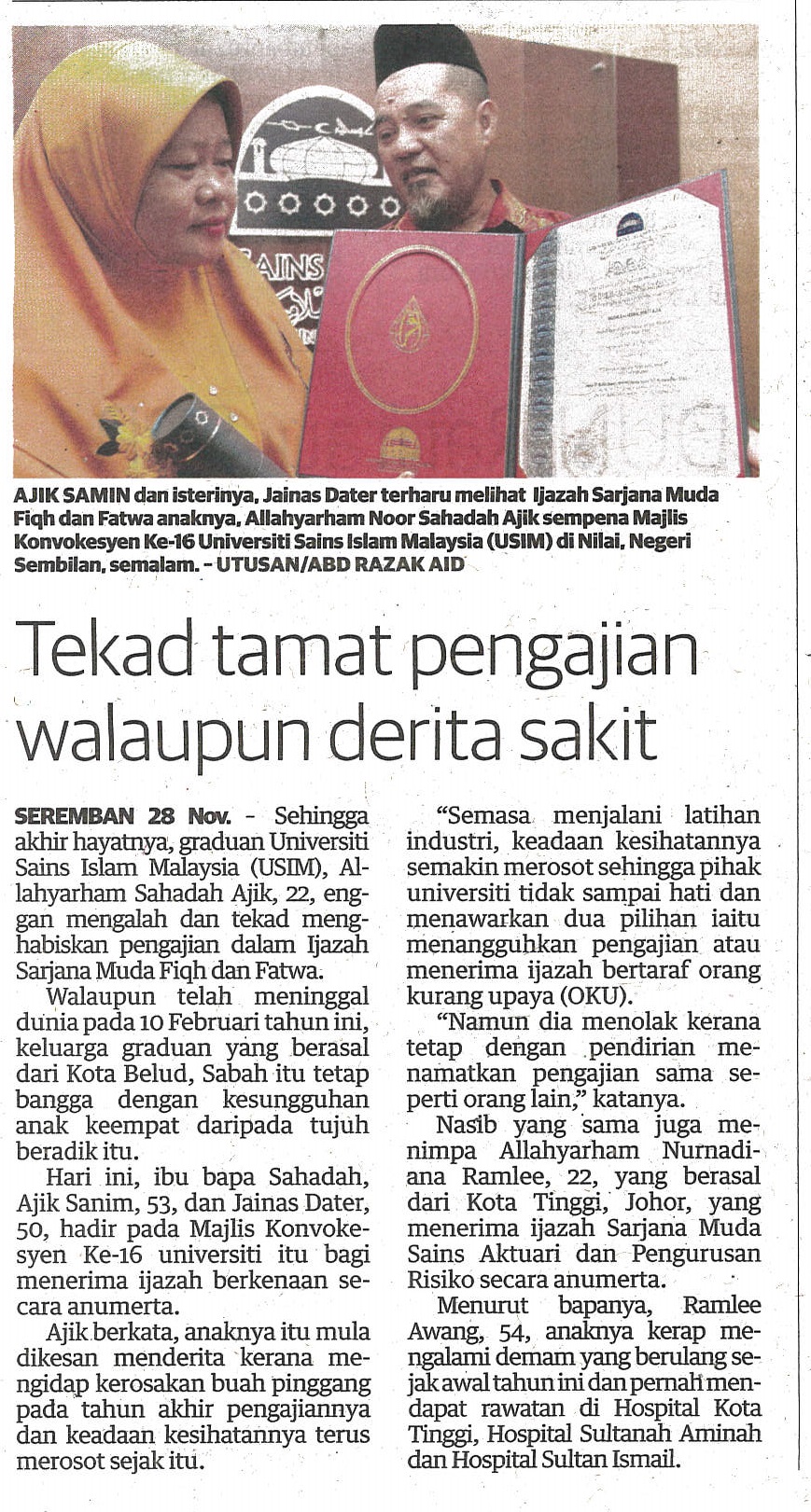 UTUSAN MALAYSIA 29 NOVEMBER 2018 MS 11 TEKAD TAMAT PENGAJIAN WALAUPUN DERITA SAKIT.jpg