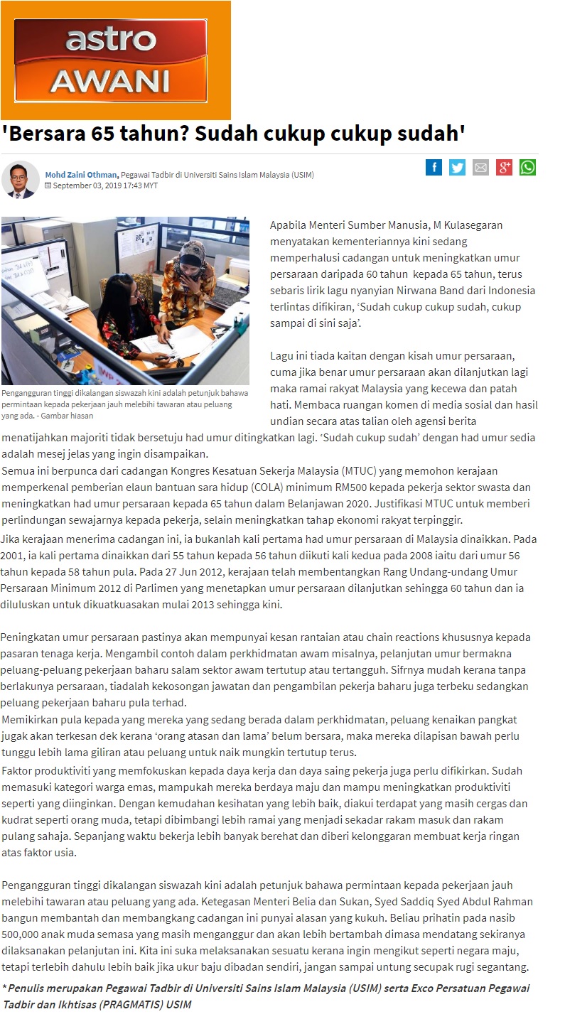 Bersara 65 Tahun, Sudah Cukup
