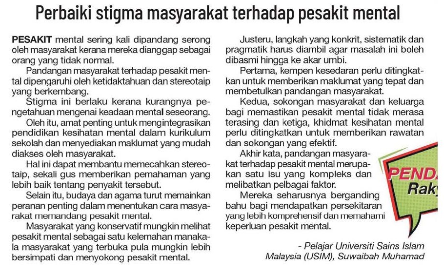 | dc.title | Perbaiki stigma masyarakat terhadap pesakit mental | |