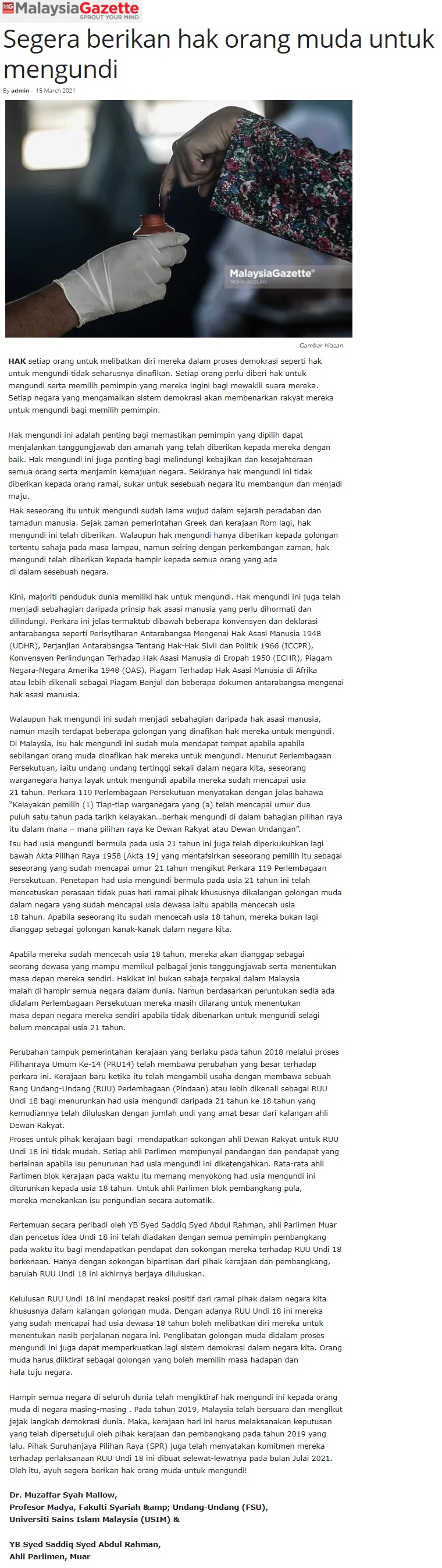 Segera Berikan Hak Orang Muda Untuk Mengundi