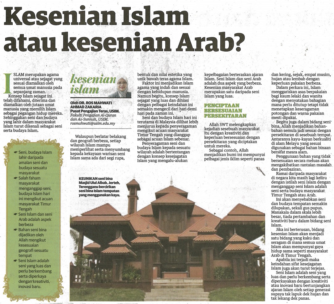 UTUSAN MALAYSIA - KESENIAN ISLAM ATAU KESENIAN ARAB , 21 APRIL 2017, MS 23.jpg