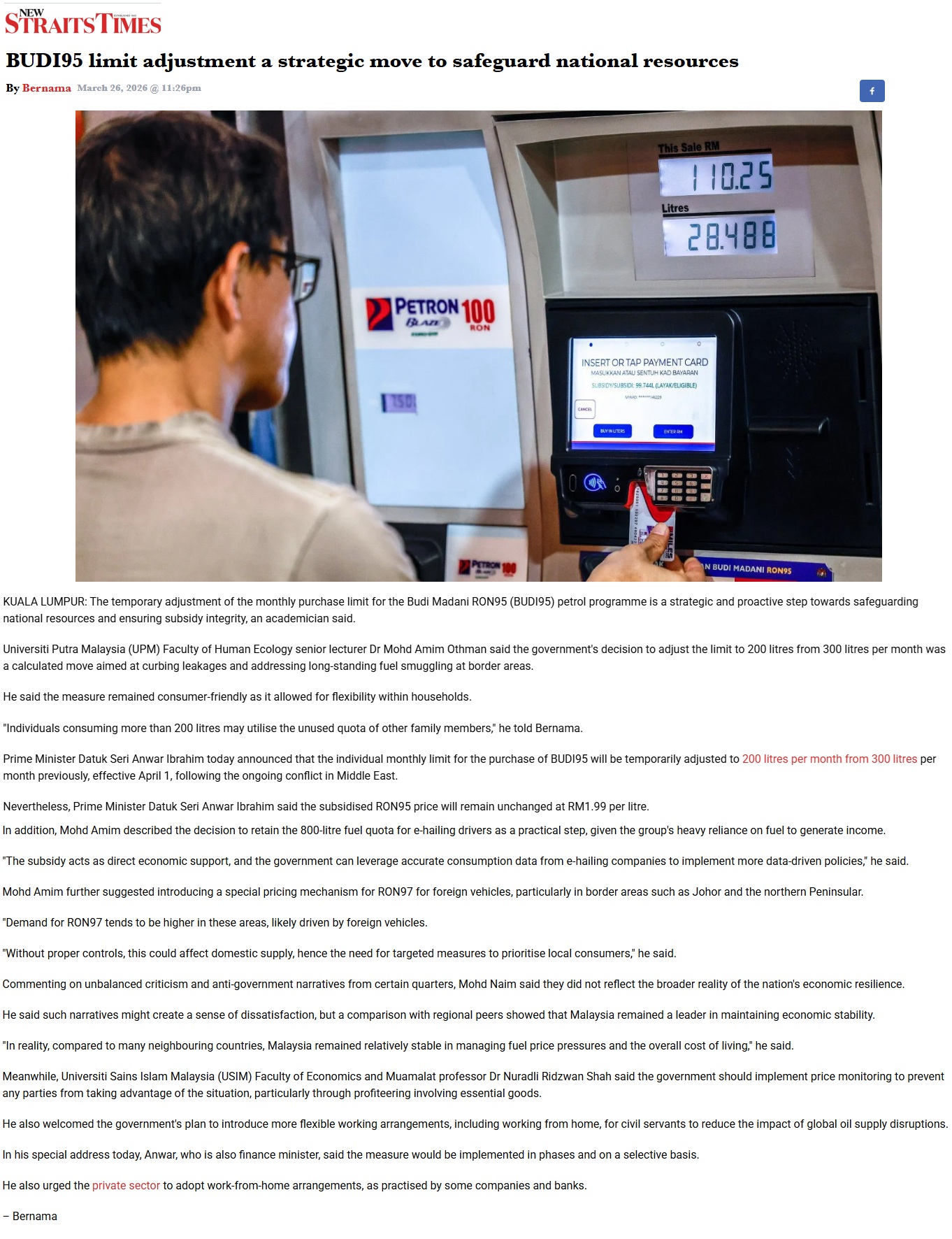 BUDI95 LIMIT ADJUSTMENT A STRATEGIC MOVE TO SAFEGUARD NATIONAL RESOURCES