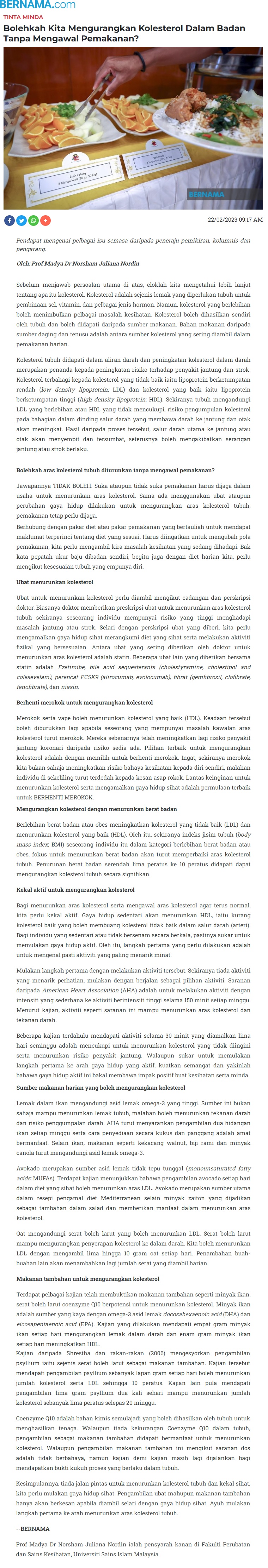 Bolehkah kita mengurangkan kolestrol dalam badan tanpa mengawal pemakanan