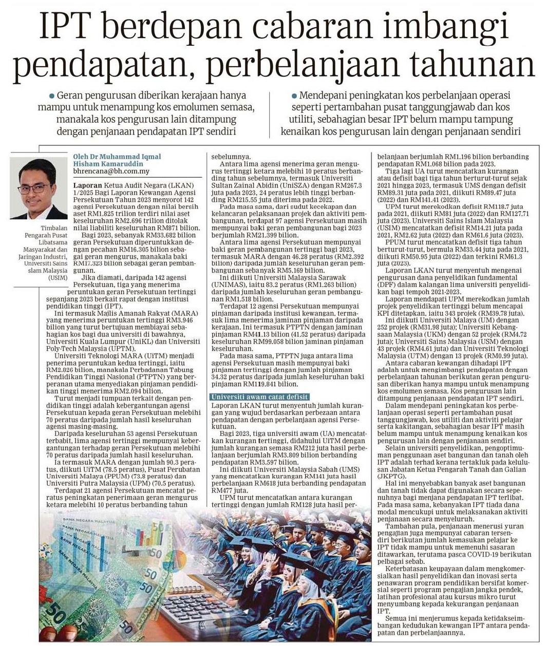 IPT berdepan cabaran imbangi pendapatan, perbelanjaan tahunan